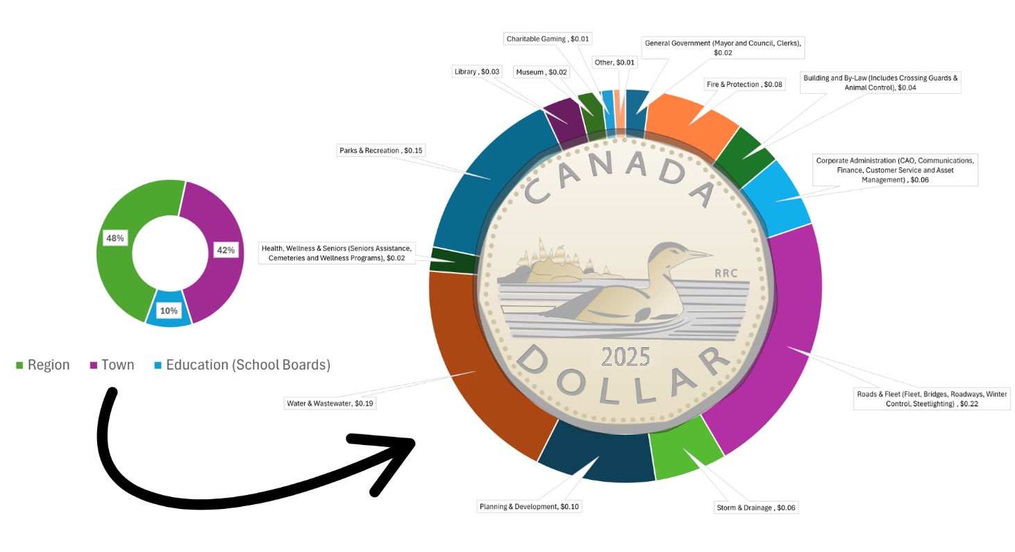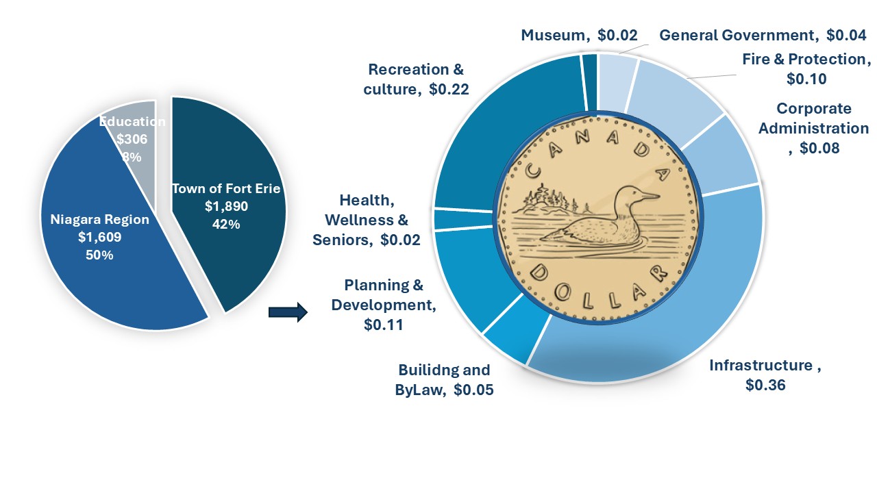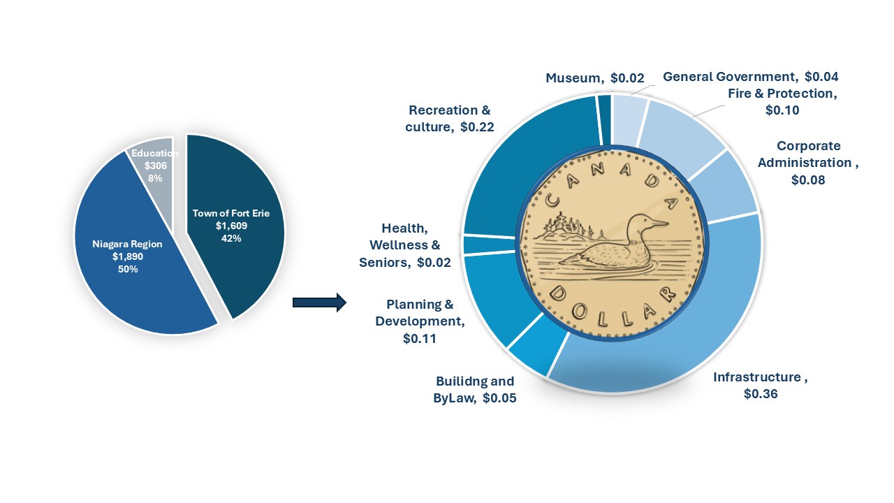 Services funded by your Property Tax Bill: Fort Erie’s tax bill accounts for three agencies. The Town collects the property taxes for all three and then pays the Region and the School Board portions to them, which they use to deliver their services. The Town of Fort Erie's portion of the tax bill is used to deliver a number of services that make Fort Erie a place to grow, prosper and belong.